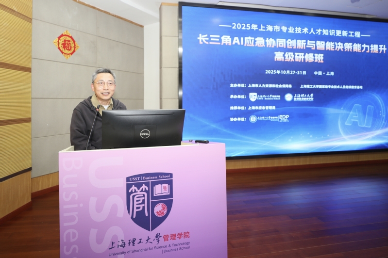 10月27日,在上海市人力资源和社会保障局的大力支持下,由上海理工大学国家专业技术人员继续教育基地主办,管理学院及智慧应急管理学院承办,高级管理者培训与发展(EDP)中心协同举办的长三角AI 应急协同创新与智能决策能力提升高级研修班顺利开班。上海市应急管理局一级巡视员桂余才,上海市杨浦区应急管理局党委书记、局长倪俊,上海理工大学副校长张华,校办学拓展办公室主任李建东,管理学院院长、智慧应急管理学院执行院长赵来军,管理学院副院长、智慧应急管理学院秘书长房志明,高级管理者培训与发展中心执行副主任葛玉辉等出席了开班仪式,开班仪式由管理学院党委书记马静波主持。
